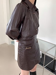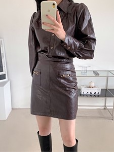 도시적인 느낌의 쿨한 무드를 풍기는 레자 셔츠&스커트입니다.
