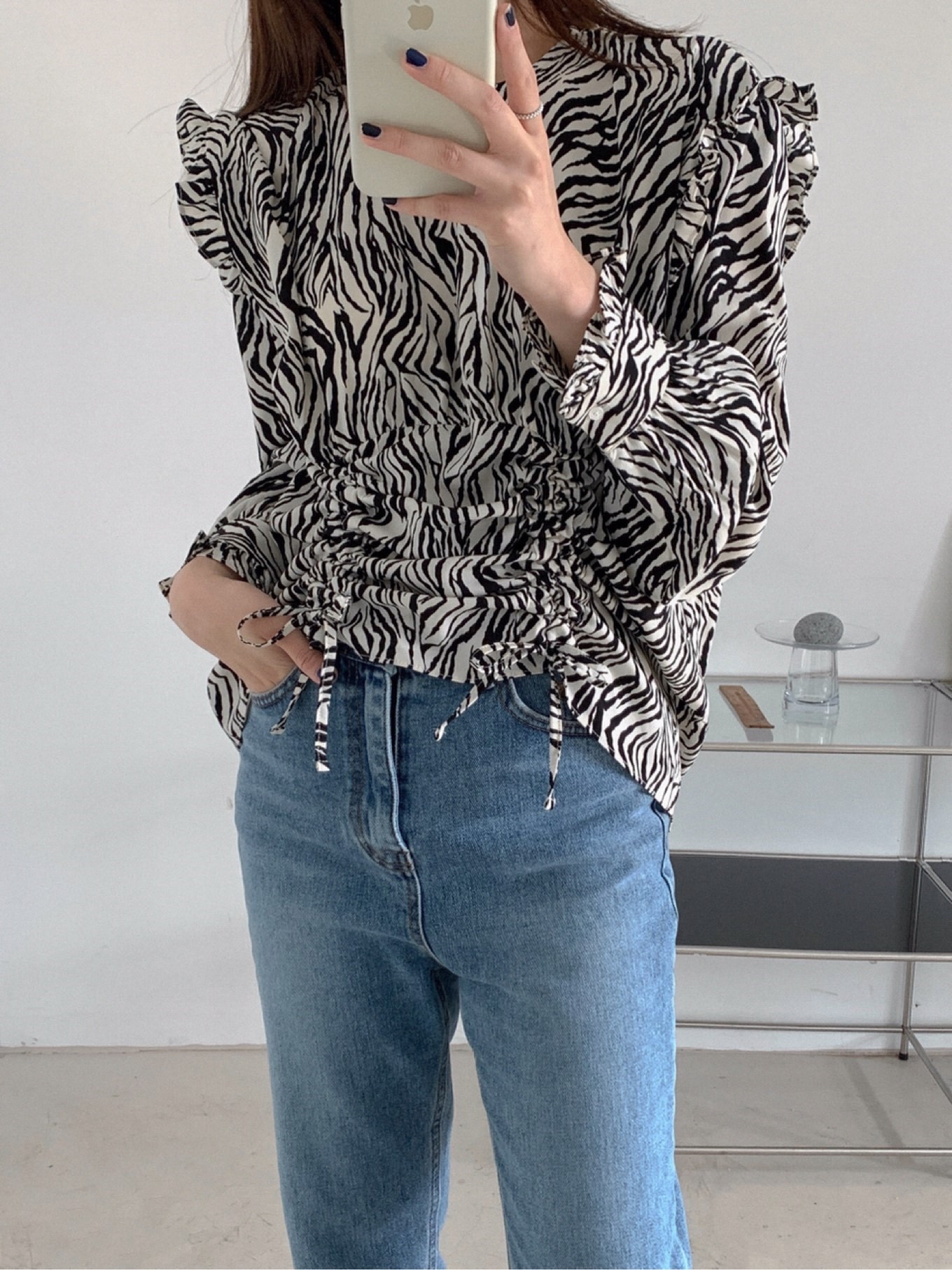 지브라패턴이 감각적인 블라우스입니다.