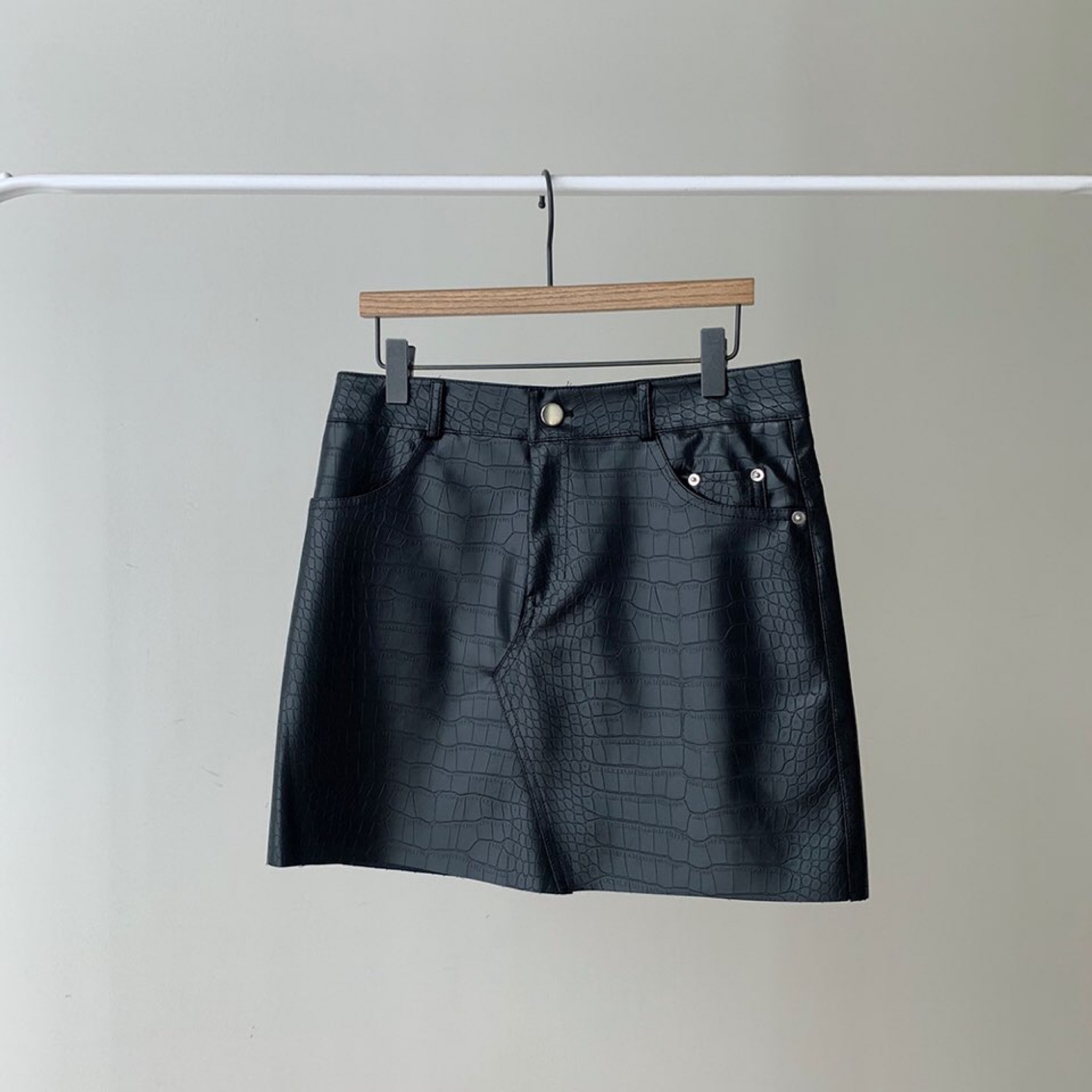 은은한 광택이 멋스러운 레더미니스커트입니다.