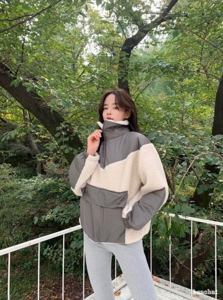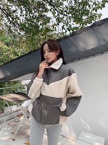 배색양털집업