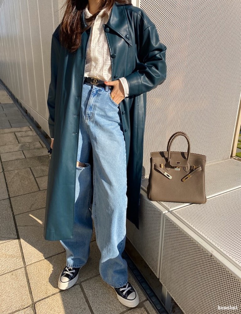 레더 트렌치 코트입니다.