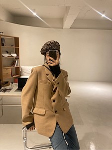 羊毛夹克,内衬经过绗缝处理,里面的口袋在两侧,非常温暖漂亮。