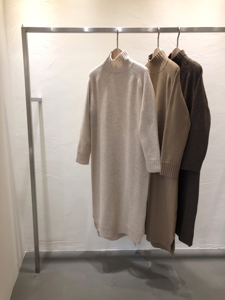 80%羊毛混纺针织连衣裙! 女人味的一字型曲线不仅可以遮盖体型! 底端不对称长度且开叉有魅力的连衣裙