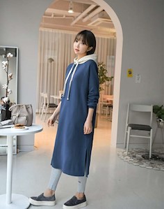 배색후드롱기모원피스1