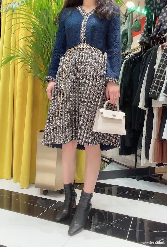 小香风连衣裙。腰带一起