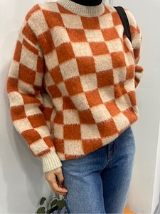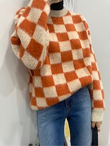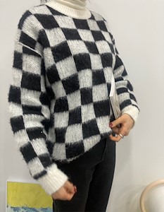 체크무늬의 니트입니다