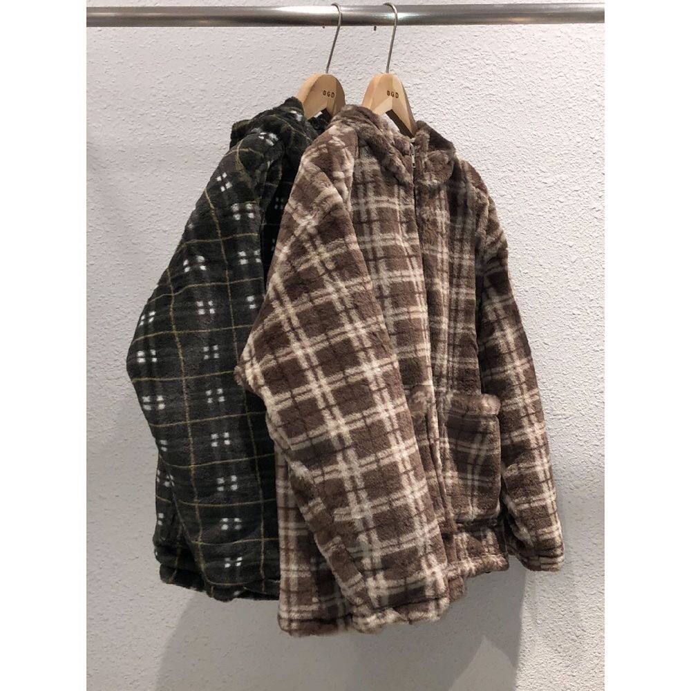 체크퍼후드집업 东大门男女共用外套