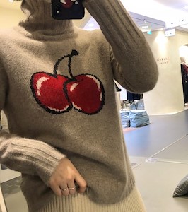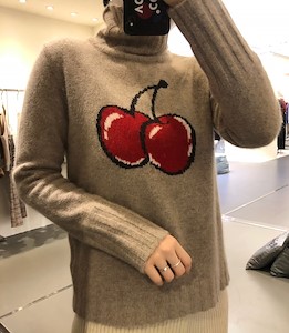 使用高级材质,非常柔软,完全没有粗糙感,舒适且是樱桃点缀很有魅力的针织衫 翻译
