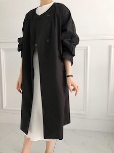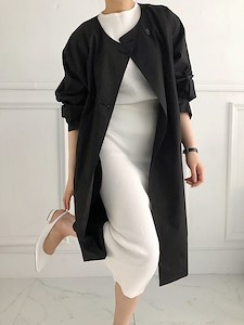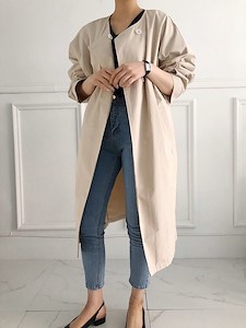 클래식하고 모던한 무드의 자켓으로 탄탄한 면소재로 깔끔한 실루엣을 연출하며 가오리핏의~ 일자로 떨어지는 와이드한 롱~기장으로 카라라인이 따로 없는 라운드넥으로 버튼으로 클로징시에도 깔끔한 사파리 ~^^