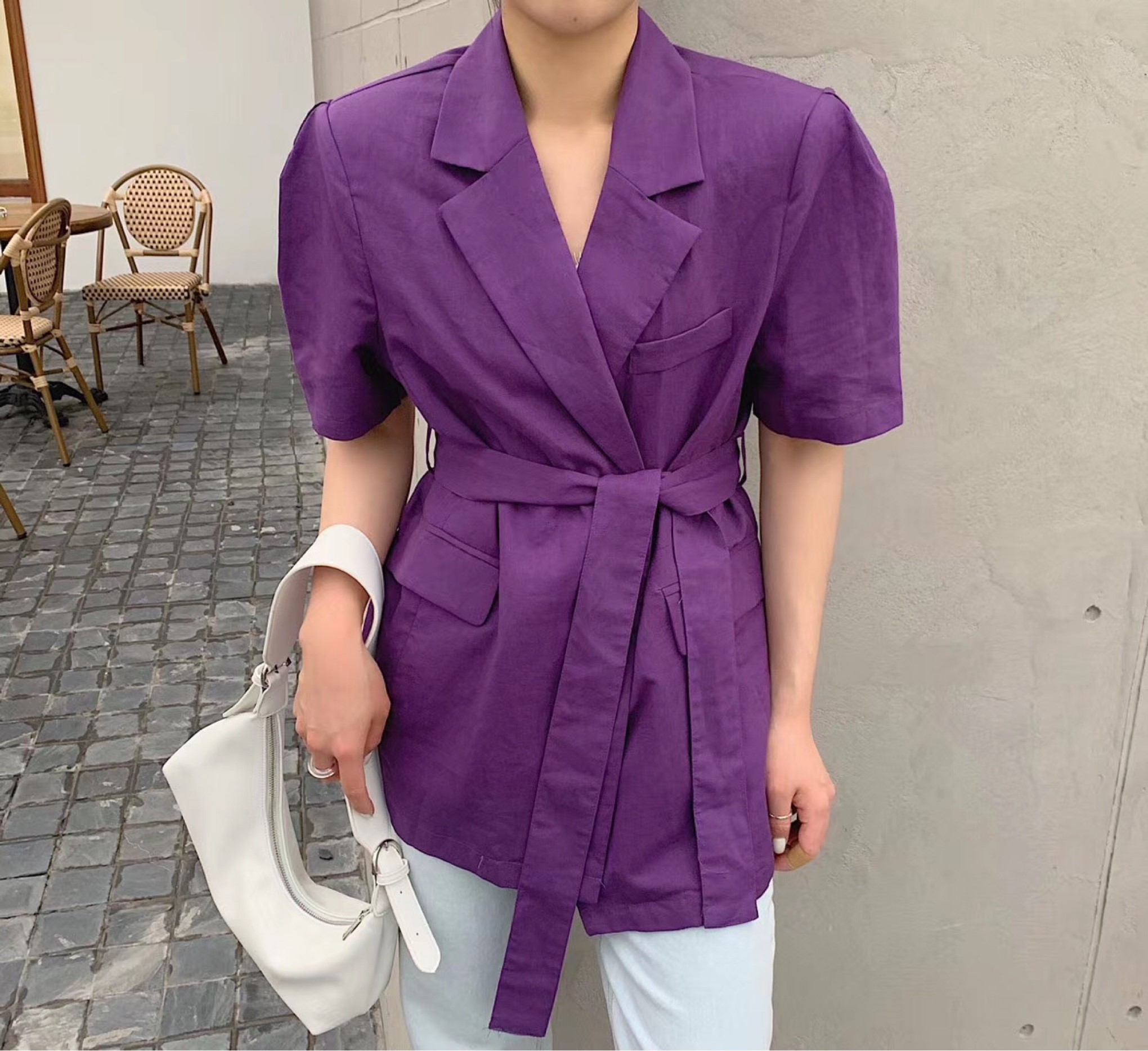 棉麻纯色夹克