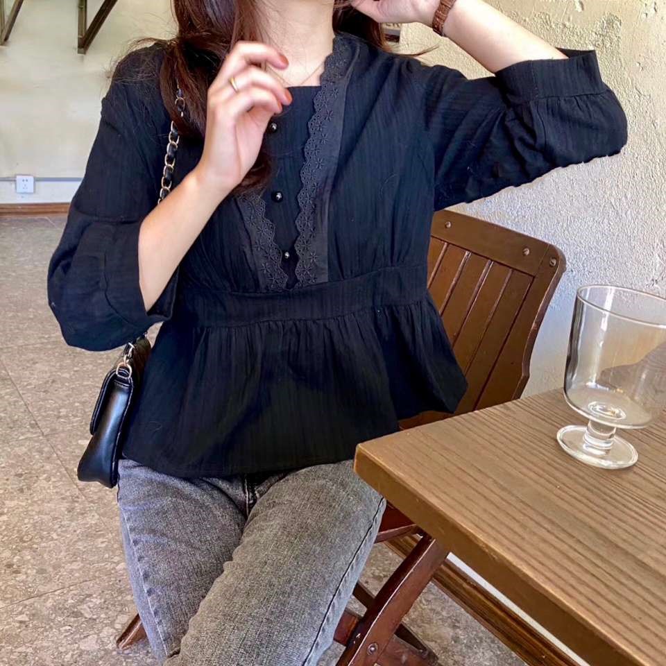 蕾丝纽扣上衣