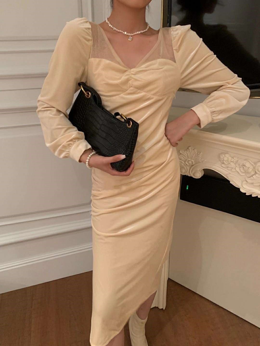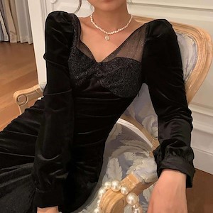 蕾丝金闪长裙