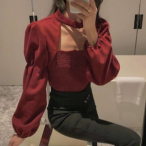 泡泡袖镂空上衣