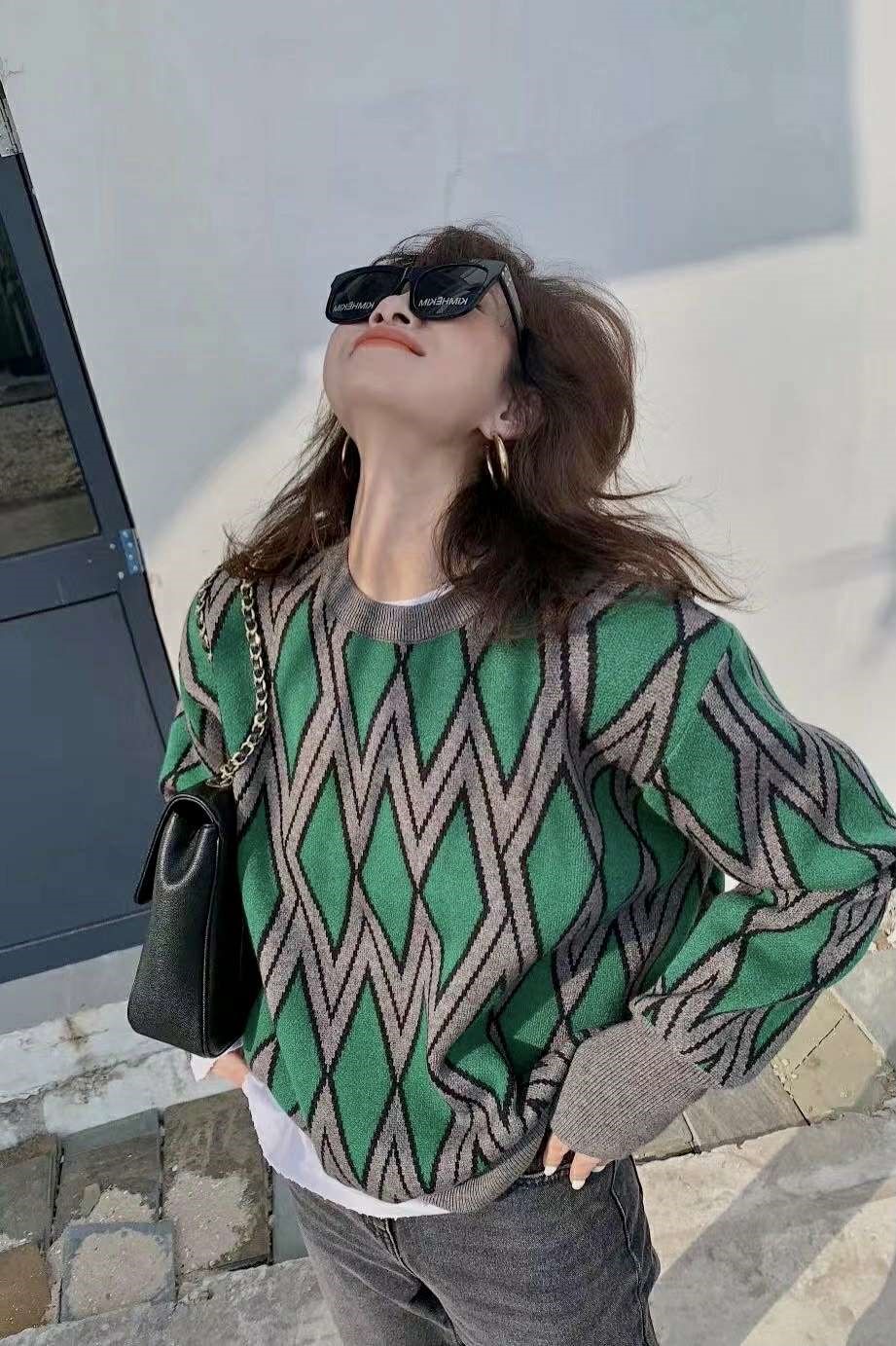 四角格毛衣