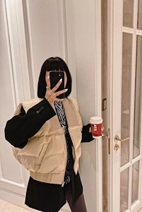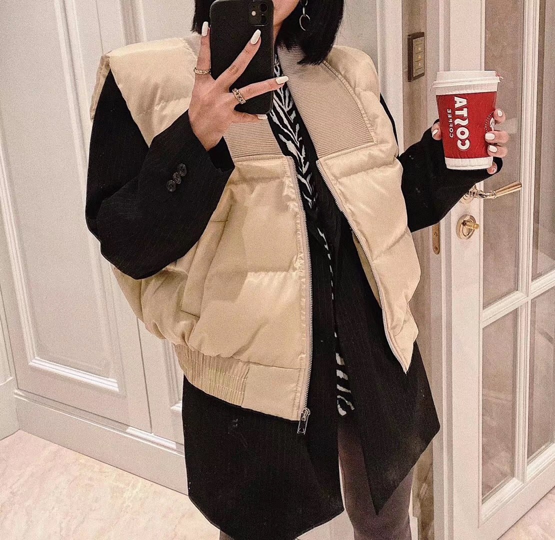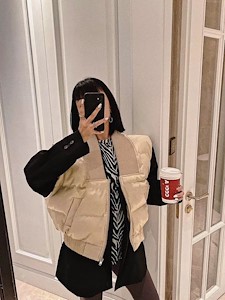 无袖纯色棉服