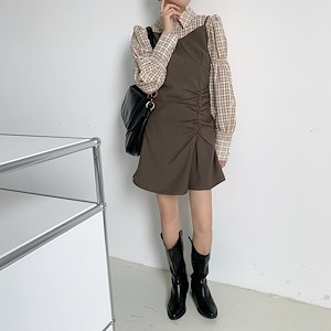 吊带纯色褶皱连衣裙