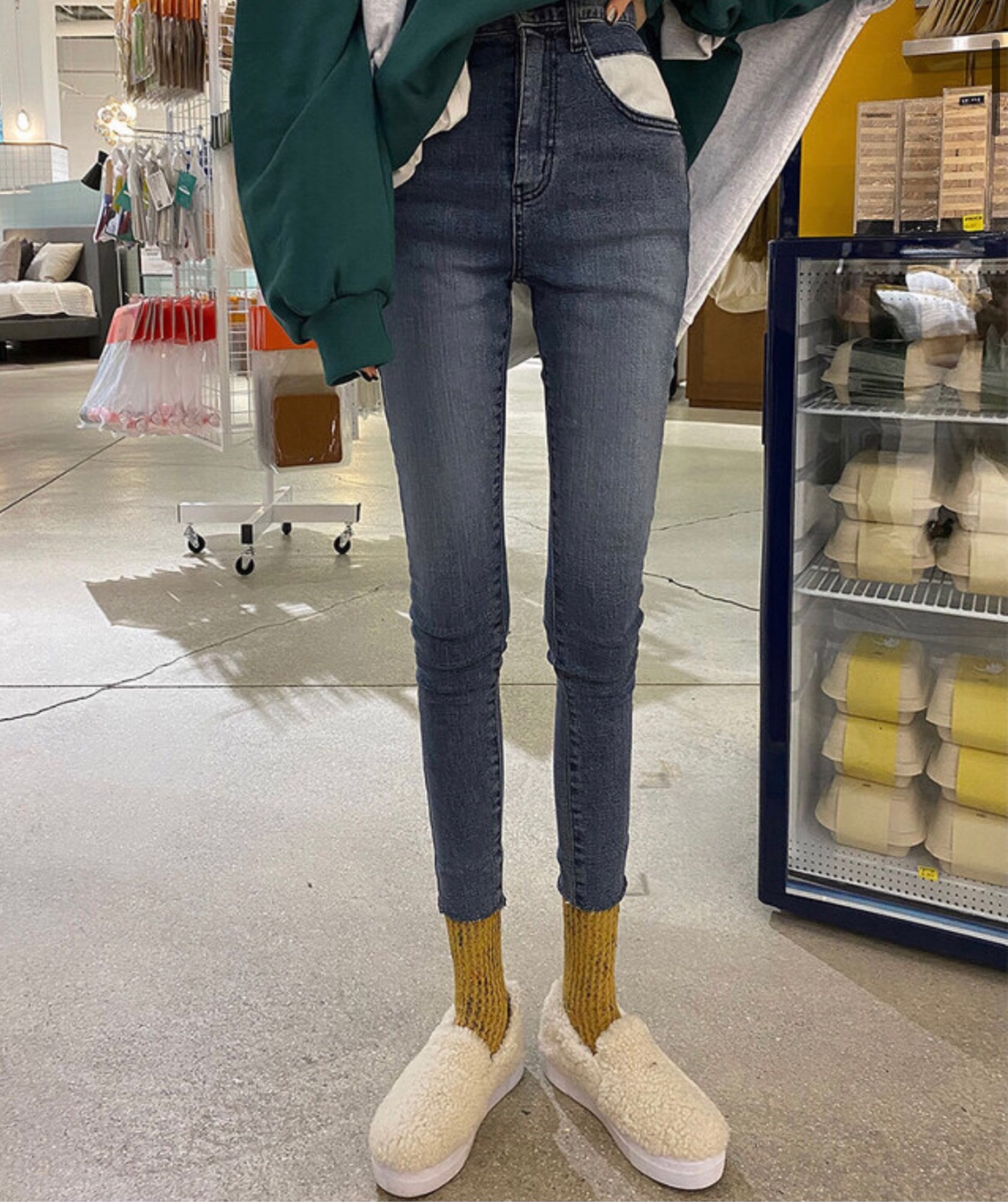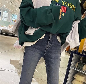 1011 배색 주머니 스키니