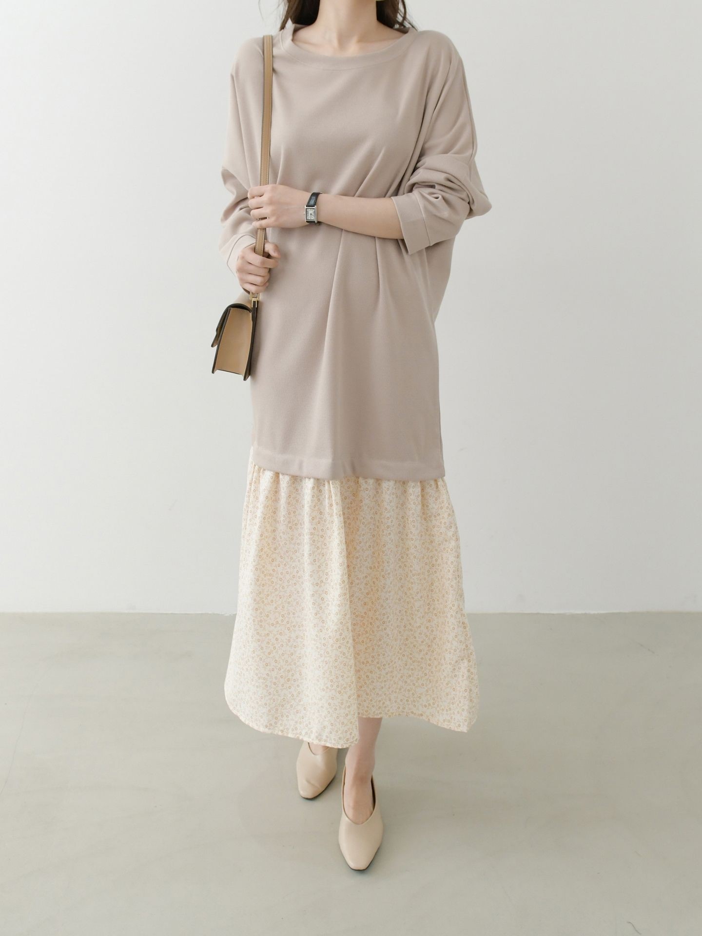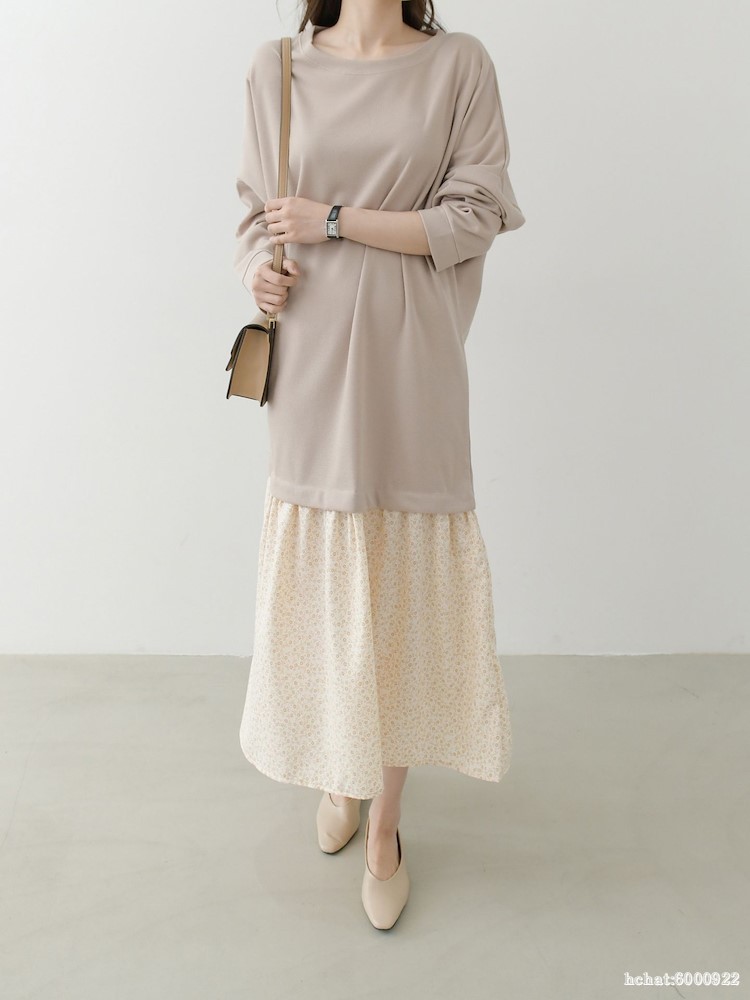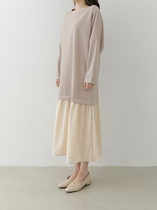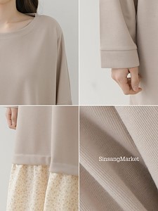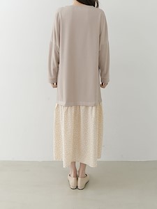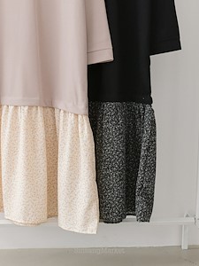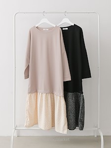 박시한 가오리핏의 상의와~ A핏의 잔잔한 꽃나염 스커트와 레이어드가 되어있는 원피스로 가볍고