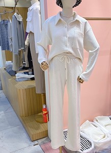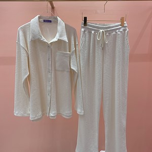 홈웨어인 동시에 데일리룩으로 손색없는 편안한 골지세트예요~