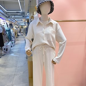 원단두께가 얇지않아 지금부터 여름전까지 데일리로 막입으실껍니다~ 바지는 전에나오는 밴딩팬츠처럼 타이트하게 붙는 스탈이 아니구 와이드한 느낌이구요