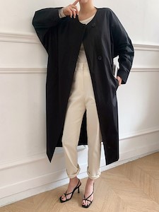 클래식하고 모던한 무드의 자켓으로 탄탄한 면소재로 깔끔한 실루엣을 연출하며 가오리핏의~ 일자로 떨어지는 와이드한 롱~기장으로 카라라인이 따로 없는 라운드넥으로 버튼으로 클로징시에도 깔끔한 사파리 ~^^