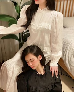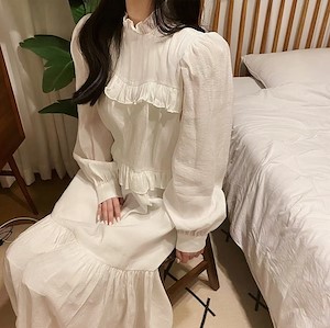 纯色木耳边连衣裙
