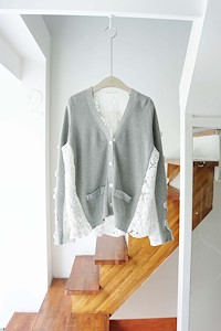 ; 니트 가디건에 앞뒤 레이스 디테일로