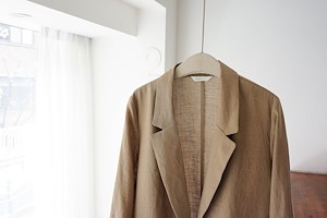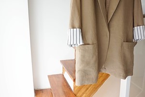 ; 원버튼으로 심플하게 떨어지는 라인의 린넨자켓입니다