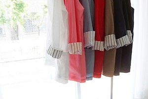 제품으로 소매 스트라이프 배색과 트임으로