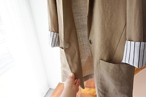 ; 원버튼으로 심플하게 떨어지는 라인의 린넨자켓입니다