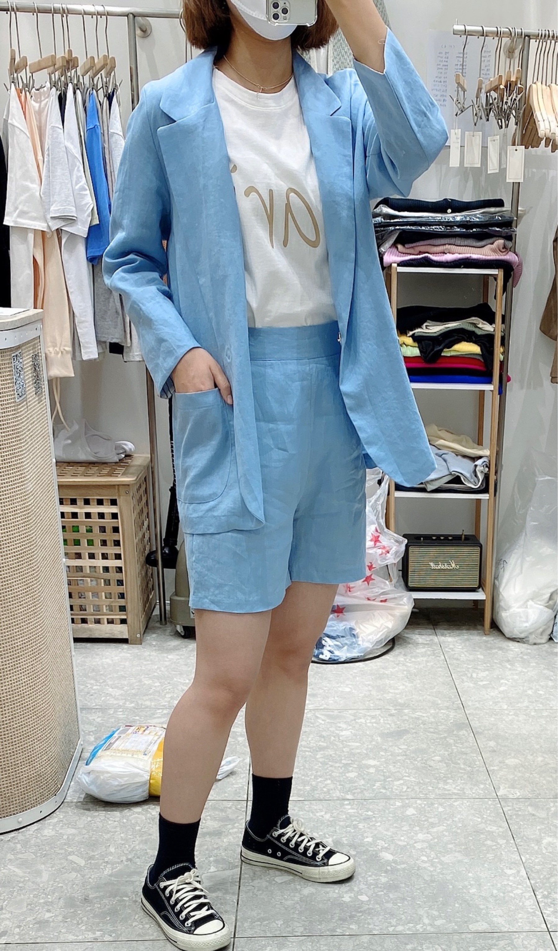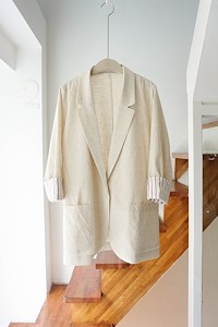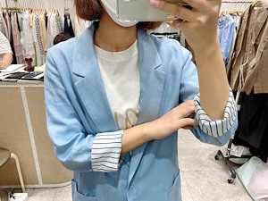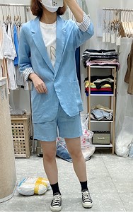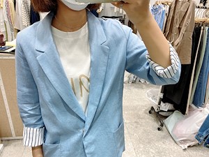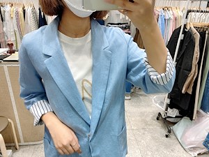 ; 원버튼으로 심플하게 떨어지는 라인의 린넨자켓입니다