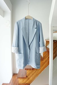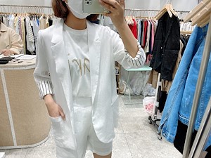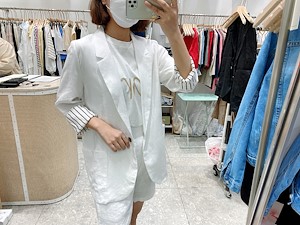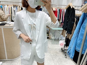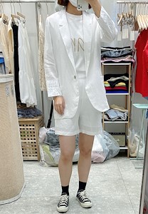; 원버튼으로 심플하게 떨어지는 라인의 린넨자켓입니다