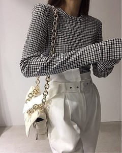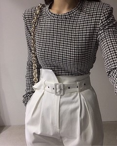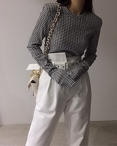 체크라운드쭉T1