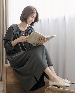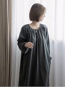 전체 A핏으로 목주변 셔링으로 자연스럽게 떨어지는 롱~원피스로 외출용과 집에서 입을수 있어