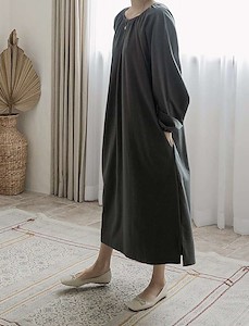 활용도가 매우 높으며 ~ 주머니와 옆트임 디테일~ 사이즈 체형 상관없이 누구나 편하고 이쁘게 입을수 있는 원피스( Dumble washing cotton 100% )