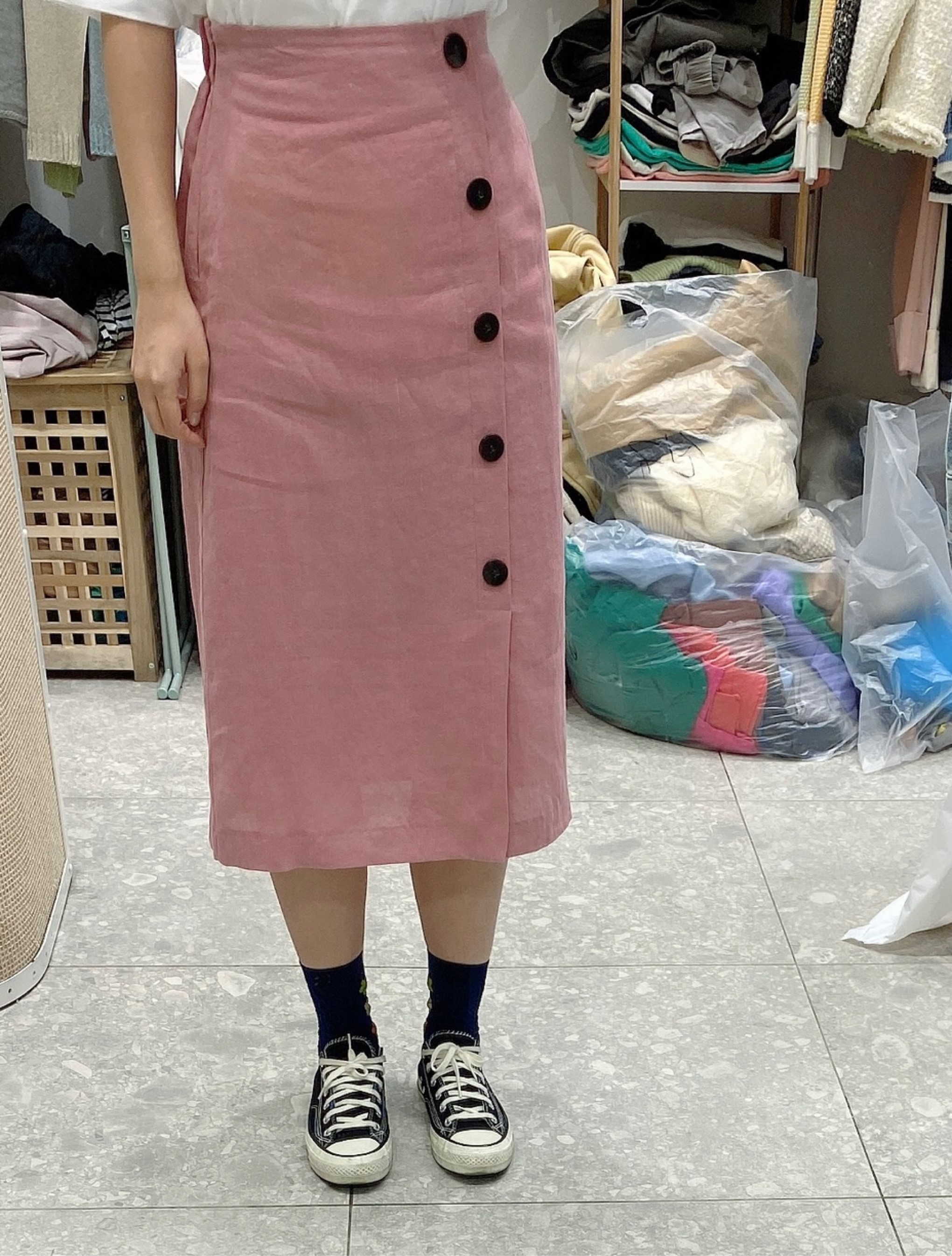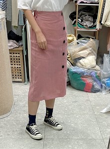 스커트입니다 사이바라인으로 단추 포인트되어