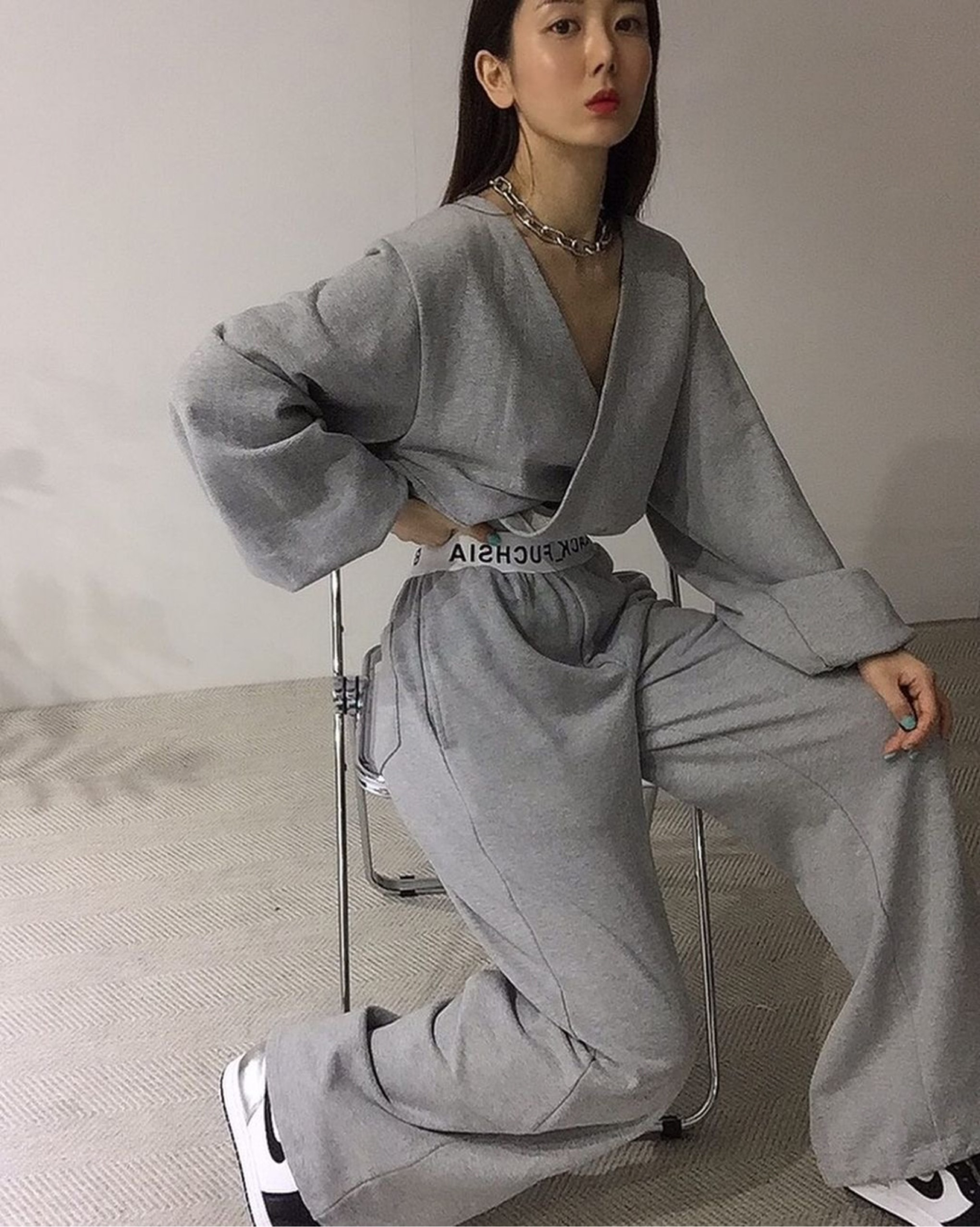 사선크롭맨투맨set