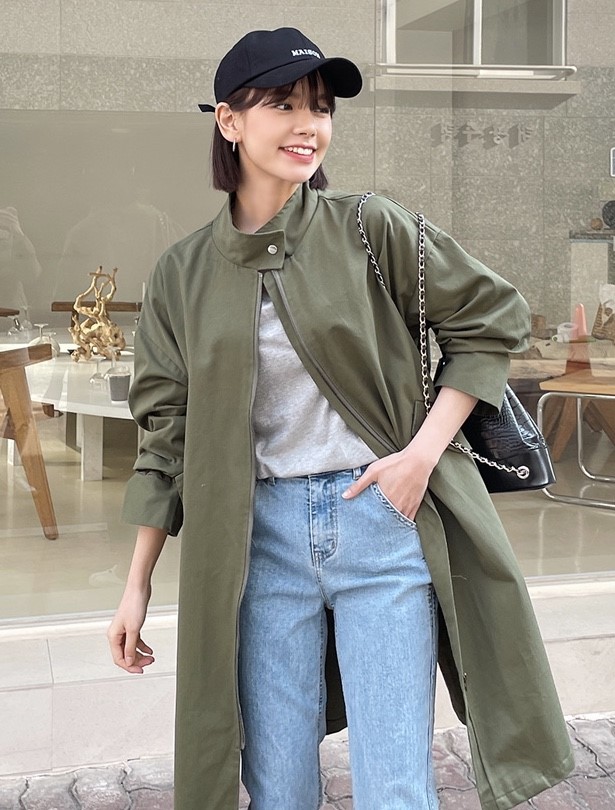 유명쇼핑몰사이트들에서 많이 진행하는 인기대박 에버딘사파리~ 심플한 디자인에 무릎까지 내려오는 롱~기장 안쪽에 허리끈으로 허리라인 조절가능하며 시크한 무드를 연출 드롭된 숄더실루엣과 루즈핏에 봄가을 심플하게 포인트를 줄수있는 에버딘 사파리~~~^^