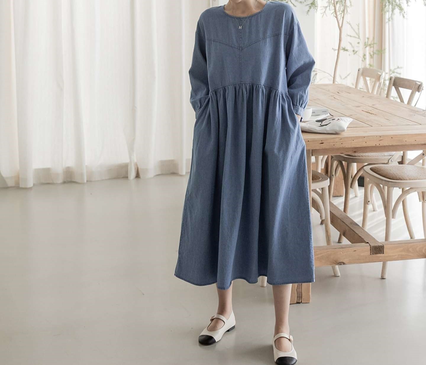 데님롱 셔링OPS1