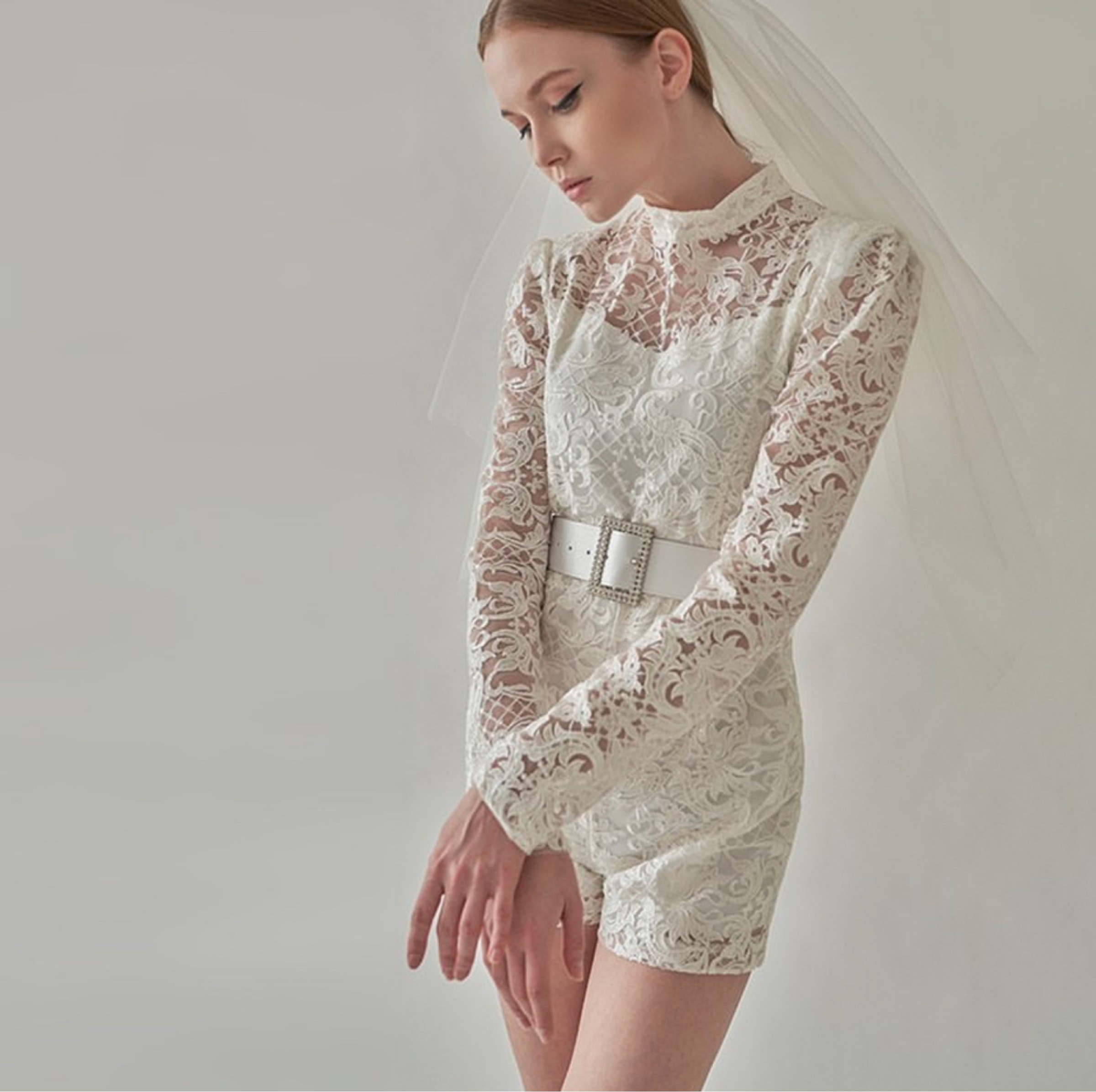 连衣裤 自助婚紗👰拍照 蕾絲连体裤 翻译