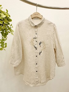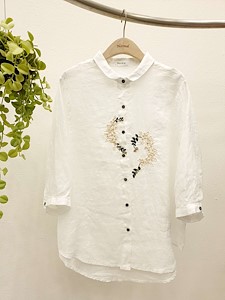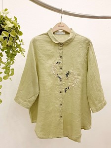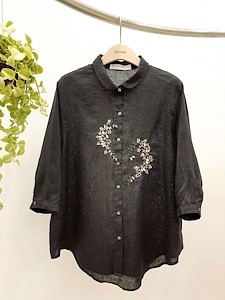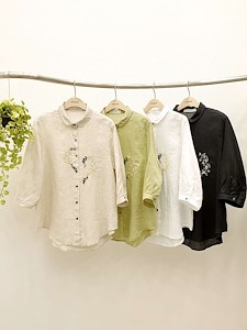 린넨핫꽃자수남방