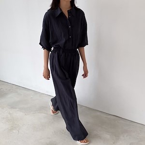 가벼운 원단감의 숏 셔츠.