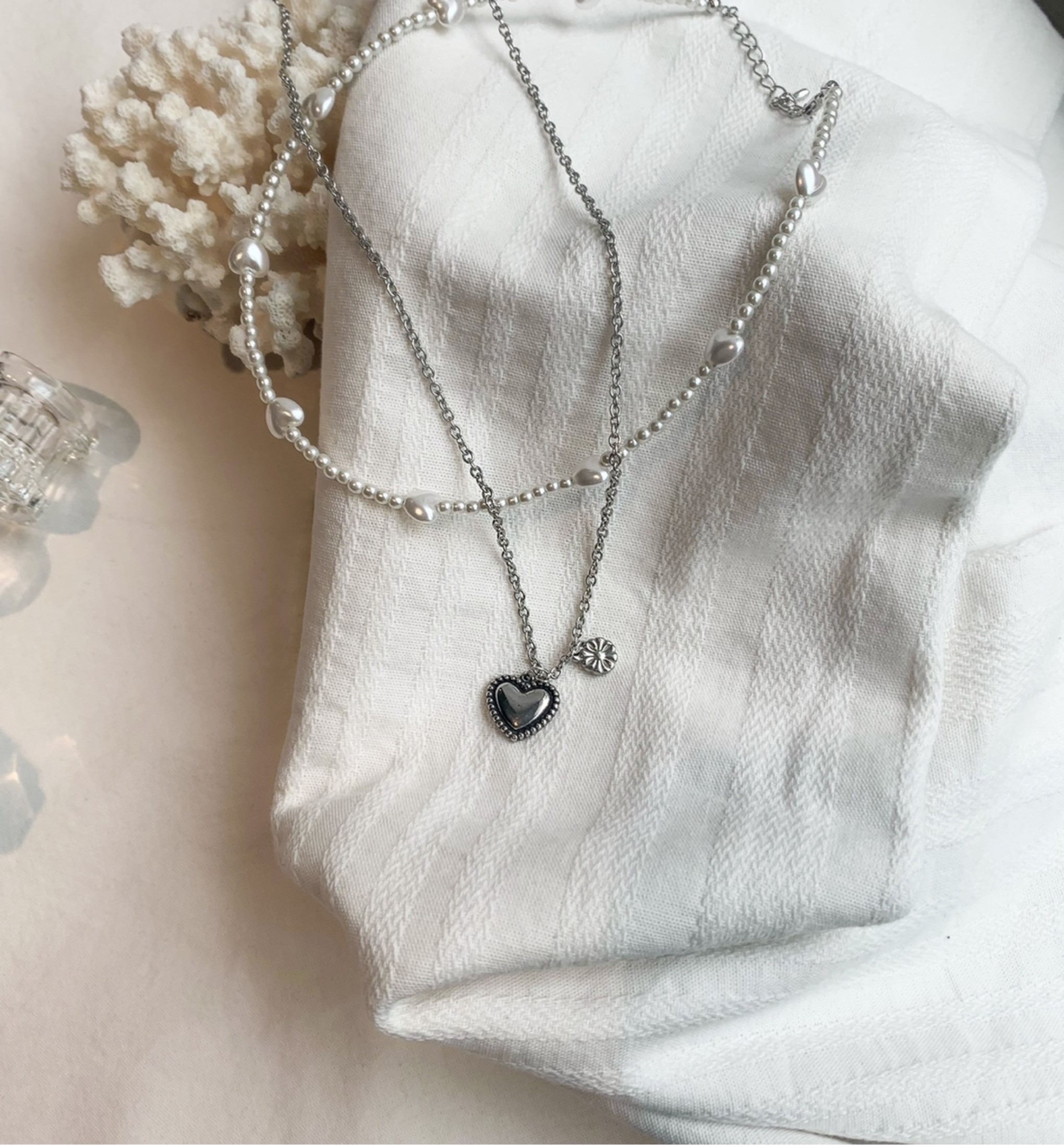 𝘋𝘳𝘦𝘴𝘴 𝘳𝘰𝘰𝘮 2021 - jewelry 볼륨 하트 데이지 목걸이1