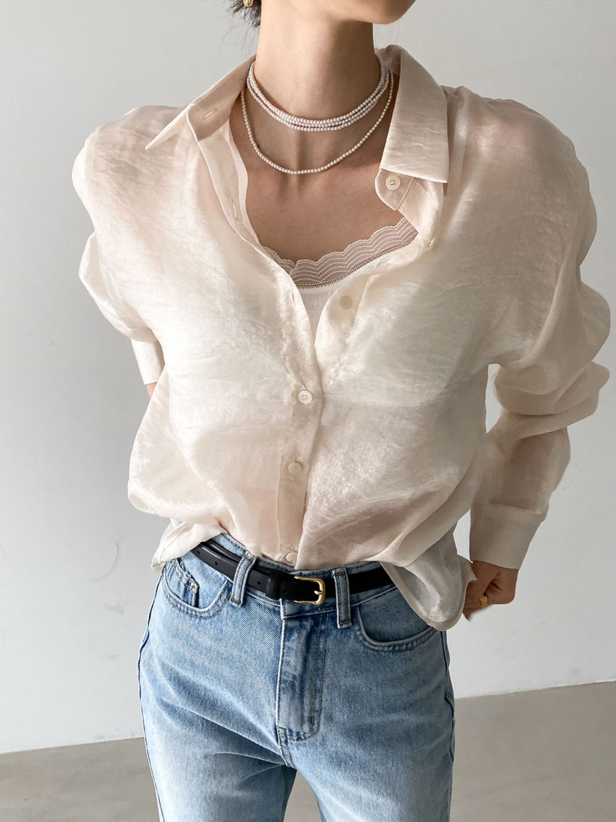 :샤샤bl 绝美细闪透视衬衫