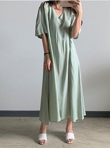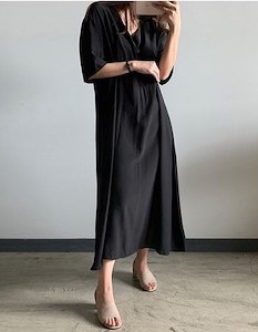 심플한 디자인의 럭셔리한 롱~원피스로 차르르 떨어지는 부드러운 실크느낌의 레이온원단~ 뒷지퍼로 편리한 탈착 및 여성스러운 여리여리 느낌을 주는 베베 원피스~^^