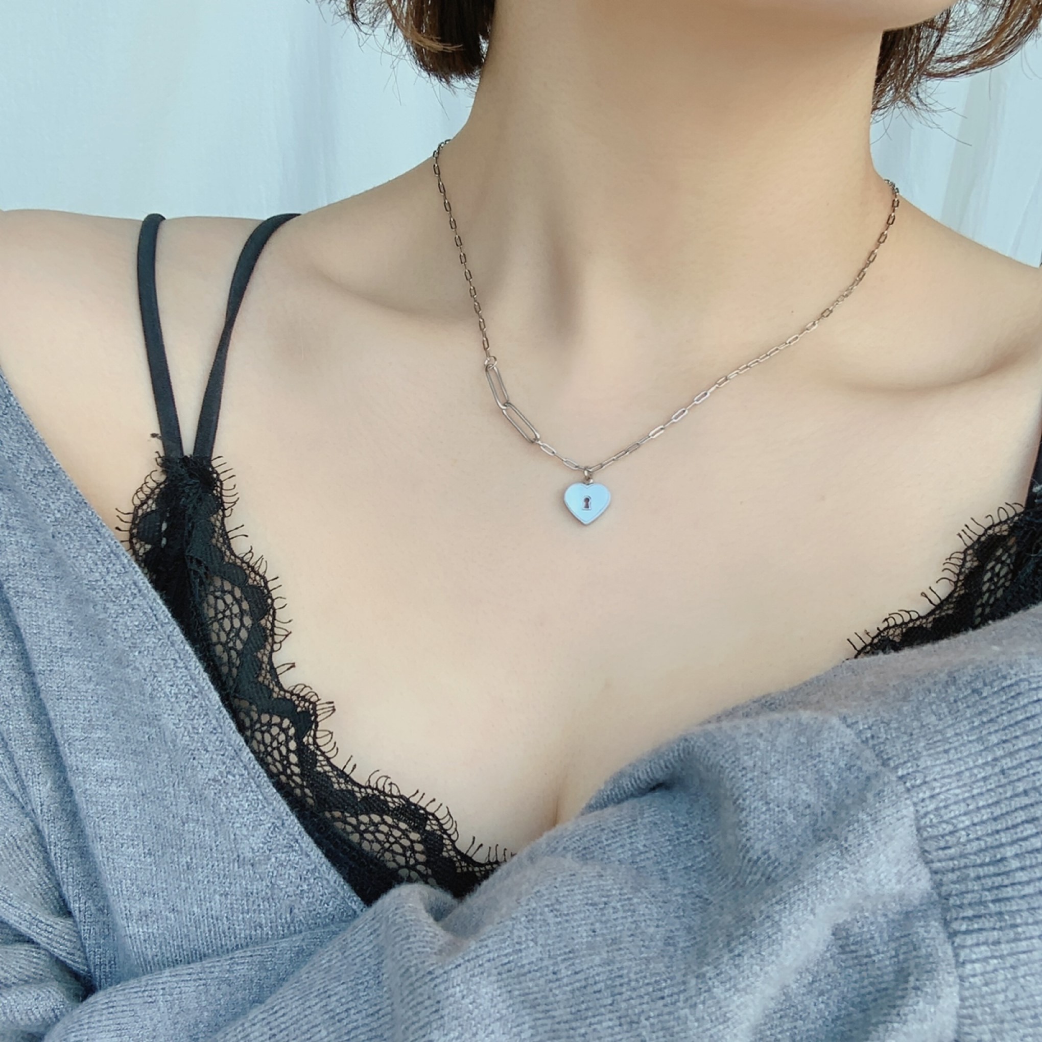 𝘋𝘳𝘦𝘴𝘴 𝘳𝘰𝘰𝘮 - jewelry 🐽 자개 하트 목걸이1
