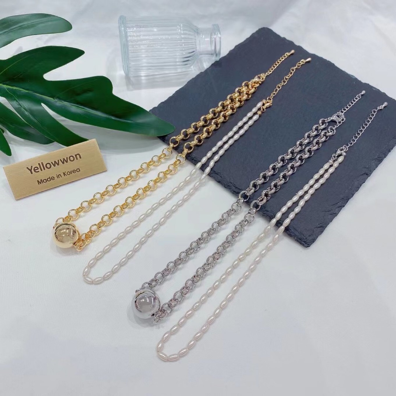 项链 珍珠 金珠 链条 圆形 可分开 两个颜色