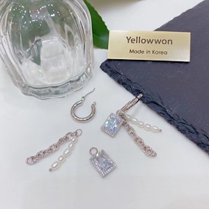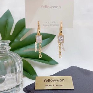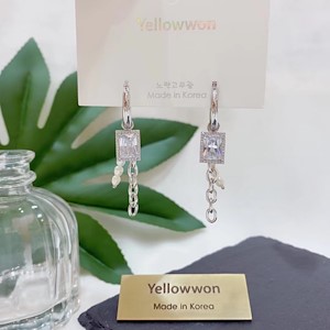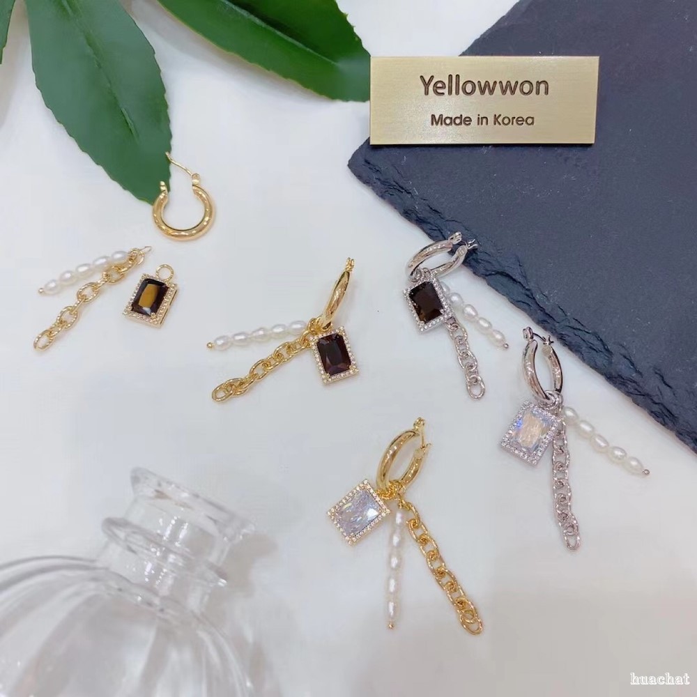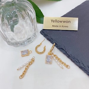 耳圈 水晶钻 天然淡水珍珠 链条 长方形 流苏 可拆卸 四个颜色
