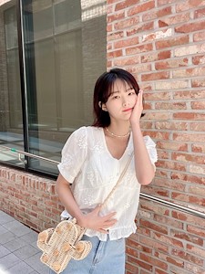 𝘋𝘳𝘦𝘴𝘴 𝘳𝘰𝘰𝘮 - 2021 ss 샤프란 자수 반팔 블라우스1