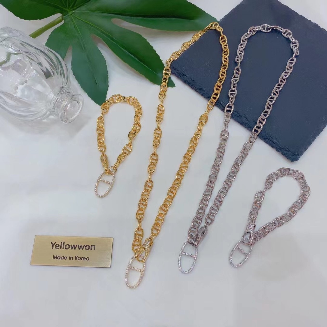 套组 项链 手链 水晶 猪鼻扣 链条 两个颜色